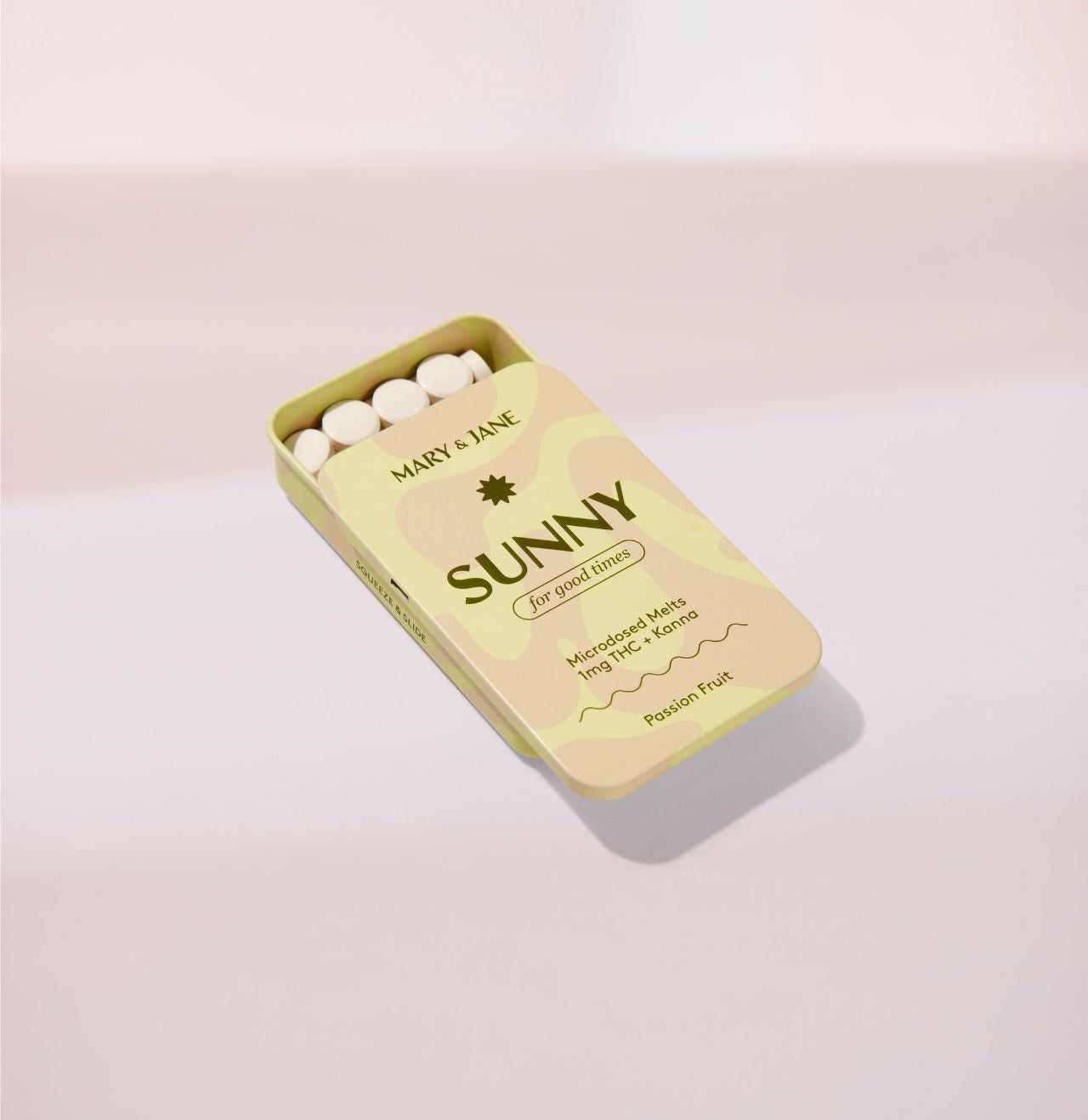 Meet your new mood ritual: Sunny—a 1mg microdosed melt (fast-acting edible) designed to brighten your day, ease your edges, and keep you feeling grounded yet uplifted.